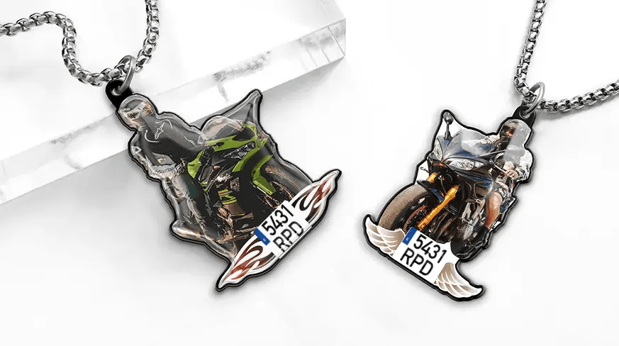 PERSONALIZE YOUR NECKLACE WITH A PICTURE OF YOUR MOTORCYCLE AND LICENSE PLATE NOW! ... Refresh preview ... Necklace Picture Motorcycle Your personalized motorcycle necklace You will receive your necklace with your desired motif in a cool design. Simply upload your favorite photo and type in your license plate number. We'll customize it perfectly! We deliver quickly The product is ready for dispatch within 3 working days of receipt of the order. A personal and unique motorcycle gift Our personalized products are among the unusual gifts for motorcyclists that every fan will be delighted to receive. Personalize this original item and we will create a great product for you, depending on the recipient. CREATE NECKLACE HERE Your personalized necklace with a picture of your motorcycle and license plate here! Customized production Perfect as a gift Cool accessory for moto fans Fast delivery Made in Germany falsefalse More products from Auto4Style Feedback from our customers 4.9 4.9 out of 5 stars (based on 271 reviews) Excellent92%Very good6%Average2%Poor0%Terrible0% Grande professionalità e disponibilità 26.03.2026 Ottima cura per il cliente che viene seguito con estrema attenzione anche in caso di imprevisti. Personale disponibile, professionale e molto cortese. Anna Caternicchia Tableau des clés 20.02.2026 Ravie de cette achat, qui a fait plaisir à une collègue qui était très satisfait de ce cadeau, la livraison est respectée, encore un grand merci a toutes l’équipe continuez à faire ce que vous faites c’est originale et sympa bonne continuation à tous merci Mickaël Articoli 🔝 10.02.2026 Ho acquistato il portachiavi personalizzato con la profumazione alla vaniglia. Molto bello ed elegante, come mi aspettavo. Sono stata veramente contenta, la spedizione ci ha messo un po’ ma è arrivato perfetto. Rebecca Autositz- Organizer 09.01.2026 Absolut tolles Produkt, super Qualität und Verarbeitung, so schön hatte ich es mir garnicht vorgestellt!!! Vielen Dank dafür. Annett Lange Warten 08.01.2026 Ich bin mit dem Produkt sehr zufrieden aber das man so lange warten muss finde ich ein bisschen schade. Leonie Schlüsselanhänger 07.01.2026 Der Schlüsselanhänger sieht mega aus, auch die Farbe ist perfekt, wie die orginal Autofarbe. Ich bin total glücklich mit dem Artikel, auch die Lieferzeit ist für einen personalisierten Artikel vollkommen ok., vielen Dank an das Team!!! Annett Schlüsselanhänger 29.12.2025 Vielen Dank an das ganze Team, kam heute noch am 24.12 an obwohl wir spät bestellt hatten. Die Freude war riesig und der Schlüsselanhänger sieht mega aus. Gibt von uns volle Sterne Vielen Dank an alle Claudia Autoschlüsselbrett 16.12.2025 Sehr lange Wartezeit aber es hat sich gelohnt zu warten, mega cool. Ortis T-Shirt 25.11.2025 Bissl Wartezeit aber ich bin zu frieden, hatte erst Zweifel, da einige Bewertungen nicht so toll waren. Aber nein ich bin zu frieden Mandy Très bien 01.08.2025 Très contente de mon achat ! Un cadeau qui fera très plaisir. Commander le 18/07/2025 et recu le 31/07/2025, je m attendais même a un délai de livraison plus long au vu des commentaires. Etuit de très bonne qualité ! Laura Hundeanhänger 07.06.2025 Sehr schöner Hundeanhänger bin begeistert das entschädigt die längere Wartezeit. Kann ich nur weiter empfehlen. Gina Alles bestens schönes Design und gute Qualität 07.06.2025 Habe den Schlüsselanhänger am 19.05.25 bestellt am 04.06. Nachricht, Ware ist auf dem Weg. Am 06.06 Ware erhalten. Bin sehr zufrieden mit dem Design, ist ein Geschenk für meine Tochter. Hat zwar etwas länger gedauert, habe rechtzeitig bestellt und die Freude war umso größer. Gerne wieder. Sabine Strauch Hundeanhänger kette 15.05.2025 Es hat zwar sehr lange gedauert bis mein anhänger da war,es war die schuld von DHL,aber ich bin total begeister von dem ergebniss. Ein sehr schöner anhänger. Beate Hiller Alles super gewesen und echt coole Anhänger 04.02.2025 Also die negativ Bewertungen kann ich leider nicht nachvollziehen. Habe trotzdem bestellt und alles super gewesen sehr schöne Anhänger. Der etwas längere Versand ist je nach Auftragslage und auch mit dem Versanddienstleister zu Folge zuführen. Erfahrungsgemäß mit der Pin AG ist eine etwas längere Versandzeit wie mit anderen. Aber man sollte einfach etwas Geduld haben. Kann es nur weiter empfehlen und war auch nicht die letzte Bestellung. Matthias Sehr schönes Design und hohe Qualität 13.01.2025 Hat zwar etwas länger gedauert, aber dafür war die Freude um so größer. Gerne wieder. Wimmer Johann Show more ratings Write a new Review